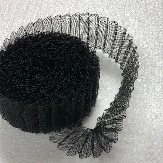 Zwarte crin plissee in de breedte geplisseerd met een geweldig 3 D effect.